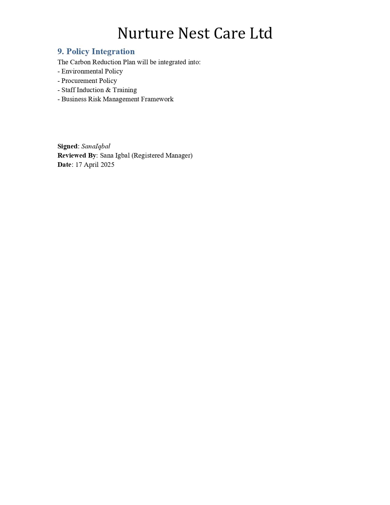 • Carbon Reduction Plan